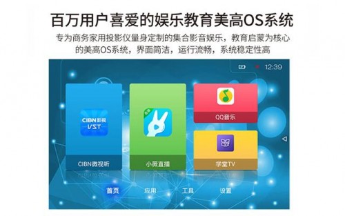美高G10Pro微型投影儀采用數(shù)以萬計用戶喜歡的娛樂教育美高OS系統(tǒng),專為本機定制的集合影音娛樂、教育啟蒙的美高OS 系統(tǒng),界面簡潔、運行流暢、系統(tǒng)不變,盡顯美高G10Pro微型投影儀唯美時尚實用之特點。
