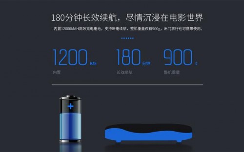 美高G10Pro微型投影儀內(nèi)置超能電池,實現(xiàn)超長待機 3 小時。在任何地方可以免接電源使用。