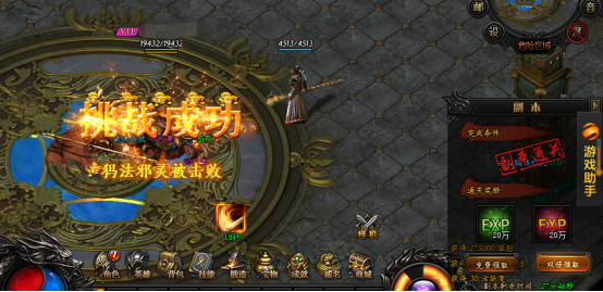 進入后,鑒于安適性考慮,,傲天藍月傳奇系統(tǒng)會提示大家“BOSS就在附近,擊敗可獲得海量裝備”。別看瑪法邪靈25萬的生命值,就戰(zhàn)斗力而言非常一般,所以要想獲得右側(cè)的角色經(jīng)驗值和英雄經(jīng)驗值各20W也并非什么難事。