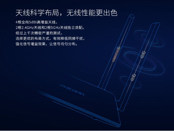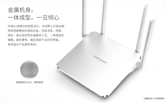斐訊路由K2P全面上市,四根多棱角天線超豪華配置,2.4GHz外置2路PA+LNA模組,5GHz外置2個(gè)FEM專業(yè)模塊,全方位立體無(wú)線覆蓋,降低噪聲干擾,穿墻能力大幅提升,收發(fā)流暢高速,信號(hào)輕松覆蓋200平方米,只為用戶呈現(xiàn)最好。