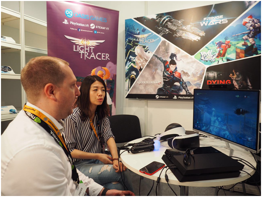一名資深游戲編纂在科隆游戲展現(xiàn)場(chǎng)試玩《Hidden Dragon Legend(隱龍傳)》
