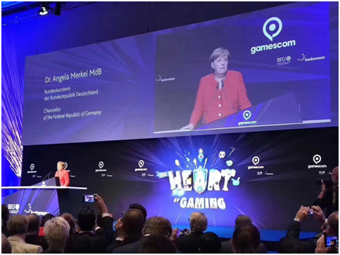 德國(guó)總理默克爾在科隆游戲展頒發(fā)演講
