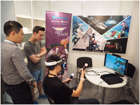 試玩《Light Tracer(光之追跡者)》的媒體記者