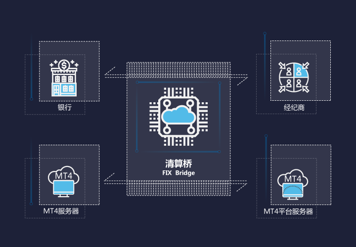 Fix清算橋系統(tǒng)通過API別離連接MT4 辦事器和上游LP,可以將MT4 系統(tǒng)內(nèi)部的頭寸直接投放到國際清算機構(gòu)或者清算對手中,讓經(jīng)紀商在連結(jié)中立的前提下,將交易敞口風(fēng)險輕松轉(zhuǎn)移。