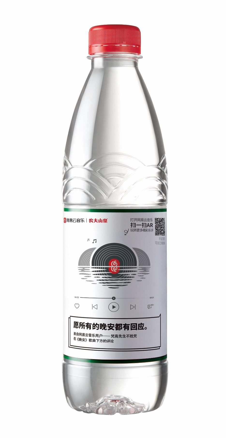 這次,網(wǎng)易云音樂又精選了 30 條用戶樂評,印制在 4 億瓶農(nóng)夫山泉飲用天然水瓶身,目前這款“樂瓶”水已在北京、上海、杭州等全國 69 個城市首發(fā),京東同步聯(lián)合發(fā)售。得益于水瓶的可移動性,目測此次輻射面積更為寬廣。