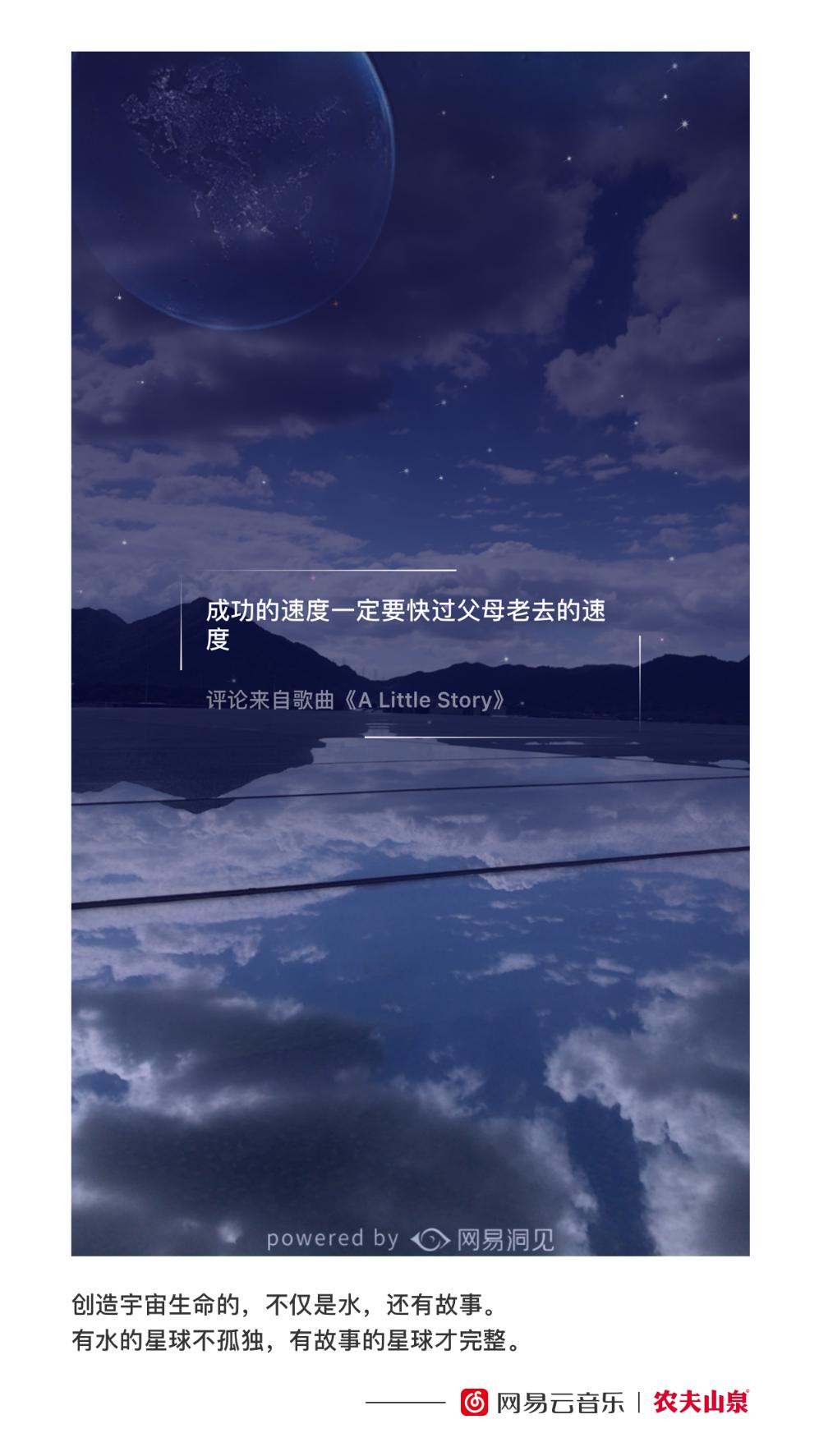如此一來,音樂的力量都被轉(zhuǎn)化得更具象。在UGC樂評之外,樂瓶傳播的案牘設(shè)計也十分巧妙?!皠?chuàng)造宇宙生命的,不但是水,還有故事。有水的星球不孤獨(dú),有故事的星球才完整?!倍潭虄删湓挘坏珜⑥r(nóng)夫山泉的水與音樂里的故事強(qiáng)關(guān)聯(lián)起來,同時也渲染了音樂里的故事力量,再次扎到C端用戶的情緒點(diǎn)。