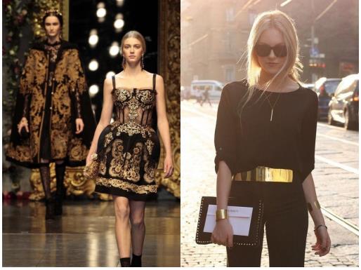 現(xiàn)代文明中,金色也是時(shí)尚圈里的??停鳛榻?jīng)久不衰的經(jīng)典,常出現(xiàn)在各大秀場(chǎng)及服裝設(shè)計(jì)師的作品中。它本性炫目張揚(yáng),釋放出極奢、放肆揮霍的氣息,光芒四射,氣場(chǎng)有如凌駕在萬人之上,顯露讓人無法匹敵的霸氣。