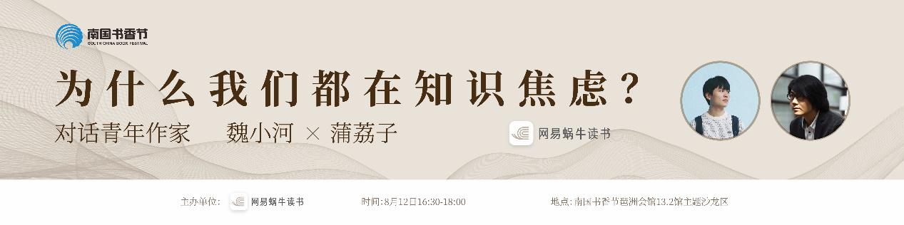 在本次展會(huì)上,網(wǎng)易蝸牛讀書(shū)將特別邀請(qǐng)知名書(shū)評(píng)人魏小河與青年作家蒲荔子,進(jìn)行主題為“我們?yōu)槭裁粗R(shí)焦慮”的沙龍對(duì)談。在信息爆炸的今天,都市人都急于獲取“干貨”,在年輕人傍邊遍及存在著對(duì)于知識(shí)的焦慮感。魏小河與蒲荔子都是蝸牛讀書(shū)的領(lǐng)讀人,不但都有本身的暢銷(xiāo)書(shū)代表作,更對(duì)讀書(shū)有著獨(dú)到見(jiàn)解。他們將在本周六的主題沙龍活動(dòng)中探討目前年輕人的焦慮來(lái)源,以及讀書(shū)是否有助于消除這種焦慮感。正如網(wǎng)易蝸牛讀書(shū)倡導(dǎo)的閱讀態(tài)度“不疾而速”,有時(shí)候慢就是快,真正花點(diǎn)時(shí)間去看書(shū)才是更有價(jià)值的閱讀方式。 8 月 12 日的16: 30 分,該活動(dòng)將在南國(guó)書(shū)香節(jié)13. 2 館的主題沙龍區(qū),面向所有不雅觀眾開(kāi)放進(jìn)行
