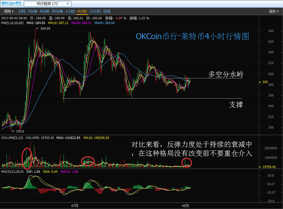 綜上所述,由于價(jià)格在觸及支撐后的新一輪反彈行情比擬之前的幾次明顯呈衰弱態(tài)勢(shì),同時(shí)價(jià)格在低位拉出大陽(yáng)并未能高舉高打,這自己就說(shuō)明現(xiàn)階段市場(chǎng)的多頭嚴(yán)重缺乏持續(xù)性,所以不宜盲目介入?yún)⑴c。日內(nèi)關(guān)注 292 一線多空分水嶺,在此價(jià)位沒(méi)有有效站穩(wěn)前不要介入;下方可暫時(shí)關(guān)注 255 一線的支撐平臺(tái),價(jià)格再次跌至此區(qū)域止跌可短線輕倉(cāng)參與,,嚴(yán)格止損。