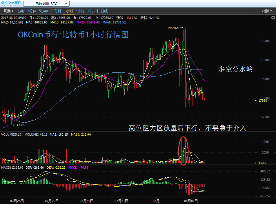 按照國(guó)內(nèi)知名的數(shù)字資產(chǎn)交易平臺(tái)OKCoin幣行的數(shù)據(jù)顯示,比特幣昨天( 8 月 1 日)價(jià)格開(kāi)市后直至亞市下午14: 00 時(shí)段都處于波濤不驚的震蕩攀升之中,市場(chǎng)并未出現(xiàn)大幅顛簸.在15: 00 時(shí)段開(kāi)始后,價(jià)格開(kāi)始上躥下跳,劇烈顛簸,其中在8: 20 分也就是第一枚BCC誕生的時(shí)候,幣價(jià)大幅下挫,從最高 19848 跌落至最低17750, 1 分鐘的最大跌幅超過(guò) 2000 點(diǎn),隨后逐漸歸于安靜。截止今日發(fā)稿前,幣價(jià)依舊在昨日低位附近運(yùn)行,最新交投于 18000 附近。
