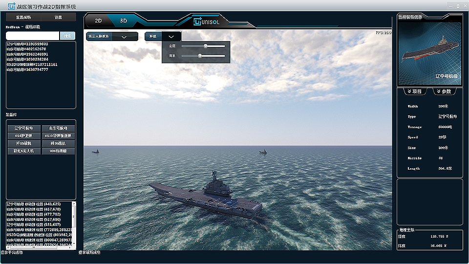 UNISOL協(xié)同作戰(zhàn)指揮仿真平臺(tái)支持戰(zhàn)法研究與演習(xí)演練,通過對(duì)戰(zhàn)場(chǎng)環(huán)境、紅藍(lán)雙方軍力安排、兵器裝備、戰(zhàn)地氣象進(jìn)行建模和仿真,,圍繞任務(wù)目標(biāo)進(jìn)行推演覆蓋海、陸、空、電領(lǐng)域聯(lián)合作戰(zhàn)方案,并支持二維指揮系統(tǒng)和三維全局視景同步,實(shí)現(xiàn)作戰(zhàn)指揮、數(shù)據(jù)采集、策略驗(yàn)證、戰(zhàn)術(shù)優(yōu)化、裝備性能評(píng)估等推演目的。