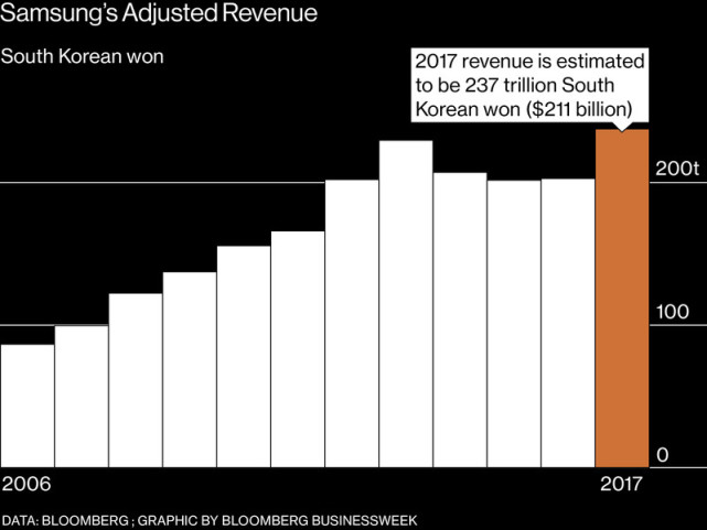三星電子為三星集團貢獻了超過三分之二的市值。盡管面臨敗北指控——盡管 2016 年召回了一些洗衣機,盡管還因為“炸機門”召回了Note7 智能手機——但在公眾的不雅觀念中,三星電子依然是全球頂尖電子品牌。