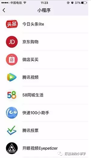 ??2-2、小程序列表直不雅觀看,小程序圖標(biāo)和小程序名稱。圖標(biāo)有創(chuàng)意,名稱簡短精煉一個詞說明該應(yīng)用是干什么的。舉個栗子,某小程序名字為:打醬油的小李子,這種小程序在用戶眼中基本活不到兩分鐘。