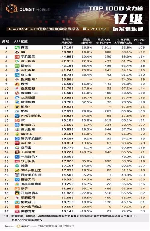 7 月 12 日發(fā)布的《移動互聯(lián)網(wǎng) 2017 年Q2 夏季陳訴》顯示,《王者榮耀》MAU(月活躍用戶人數(shù))高達(dá) 1 億 8227 萬,月度人均使用時長 942 分鐘,平均每個人每天玩《王者榮耀》超過 30 分鐘。