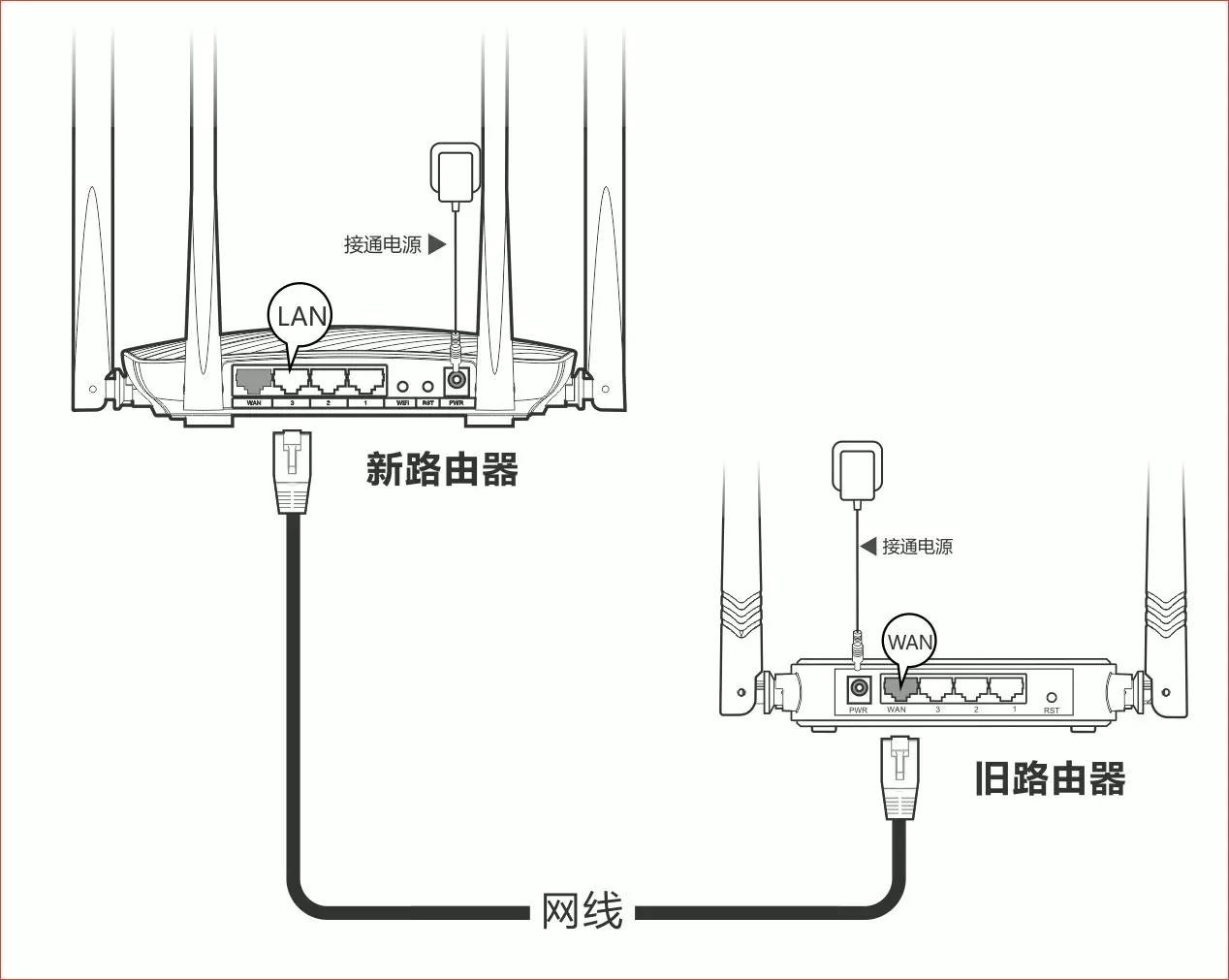 當(dāng)您忘記寬帶賬號密碼或者不會進(jìn)入路由器設(shè)置頁面安置路由器時(shí),只需用一根網(wǎng)線即可把舊路由器的寬帶賬號密碼直接遷移到新路由器上面來,無需進(jìn)入路由器頁面也能安置路由器。