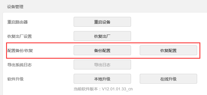 使用方法:使用電腦進(jìn)入路由器辦理界面,點(diǎn)擊【系統(tǒng)辦理】,找到【配置備份/恢復(fù)】,點(diǎn)擊【備份配置】