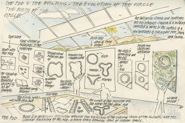 彼時已經(jīng)重疾纏身的喬布斯,展開了他為“像野草一樣瘋長”的蘋果設(shè)計的容納1.3萬人,全弧形玻璃樓、地下泊車場、6000顆樹、清潔循環(huán)能源的新藍圖。
