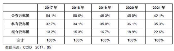 對(duì)于中小企業(yè)和雙創(chuàng)類企業(yè),仍然更多采用公有云安排模式,預(yù)計(jì)到 2021 年,公有云模式的占比將連結(jié)在40%-45%之間。