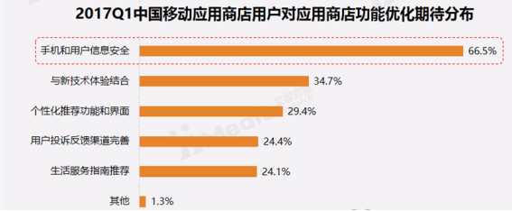 具體來(lái)看,近年來(lái)頻發(fā)的網(wǎng)絡(luò)安適問(wèn)題讓手機(jī)安適成為用戶關(guān)注的焦點(diǎn)。艾媒咨詢同時(shí)發(fā)布的相關(guān)調(diào)查數(shù)據(jù)也顯示,目前,用戶手機(jī)安適已成為用戶的最大期待。多達(dá)66.5%用戶更關(guān)注手機(jī)用戶和信息安適,顯示應(yīng)用商店安適功能重要性。