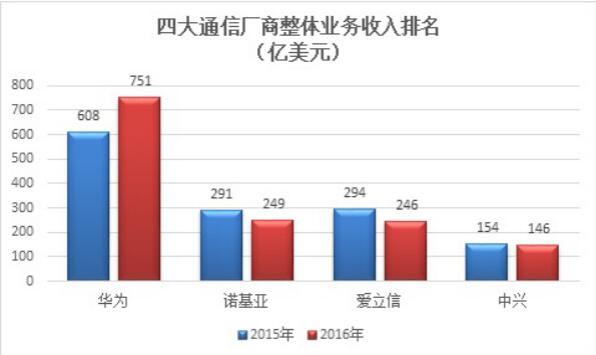按照各大通信設(shè)備及解決方案提供商年度財(cái)報(bào)數(shù)據(jù)顯示,去年,華為收入為 751 億美元成為行業(yè)第一,諾基亞收入 249 億美元排名第二,愛立信則以 246 億美元排名第三,與諾基亞僅有3億美元之差。