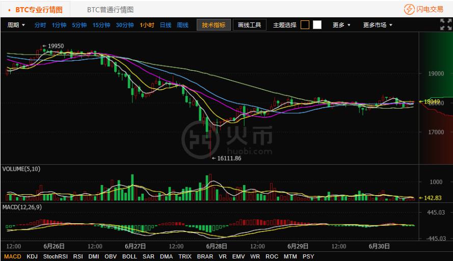 看火幣網(wǎng)比特幣行情日線圖。前期大跌后火幣網(wǎng)比特幣連續(xù)小幅反彈,成交量萎縮較為嚴(yán)重,依經(jīng)驗(yàn)來(lái)看,昨日成交量的量能將很快引發(fā)變盤的行情,從目前看,成交量有繼續(xù)萎縮的形勢(shì)??椿饚啪W(wǎng)比特幣行情小時(shí)圖。已經(jīng)連續(xù)兩日在區(qū)間內(nèi)橫盤震蕩,震蕩區(qū)間為17500- 18200 元,今日凌晨有一波小幅的放量拉升,此后接力不足自然回落,截止發(fā)稿,火幣網(wǎng)比特幣依然在區(qū)間內(nèi)震蕩,由于縮量嚴(yán)重,近日將會(huì)選擇標(biāo)的目的?;饚啪W(wǎng)溫馨提示:投資有風(fēng)險(xiǎn),入市需謹(jǐn)慎。