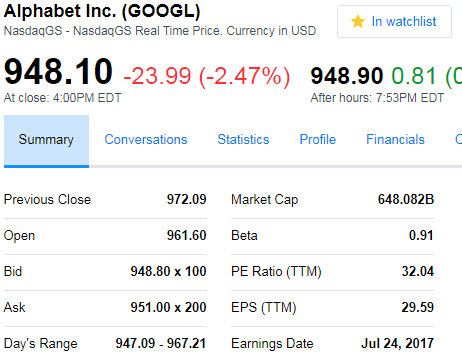 Alphabet股價周二在常規(guī)交易中下跌24美元,跌幅為2.5%,報收于948.09美元。外媒統(tǒng)計稱,Alphabet市值一夜蒸發(fā)了170億美元(約合人民幣1160億元)。