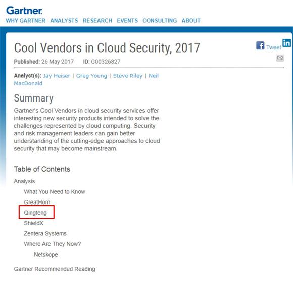 日前,全球權(quán)威的IT咨詢及調(diào)研機構(gòu)Gartner發(fā)布了《 2017 云安適最酷廠商》(Cool Vendor in Cloud Security 2017[1])陳訴,青藤云安適憑借其在云安適領(lǐng)域豐富的實踐經(jīng)驗和領(lǐng)先的技術(shù)成果成為入選本次陳訴的唯一中國企業(yè)。