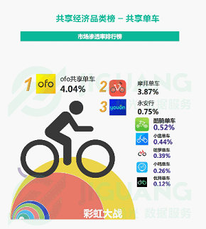 別的,按照另一權(quán)威第三方機(jī)構(gòu)極光大數(shù)據(jù)對國內(nèi)app市場滲透率進(jìn)行排名,ofo小黃車以4.04%的滲透率位居行業(yè)榜首,這意味著ofo得到了更多用戶的青睞。