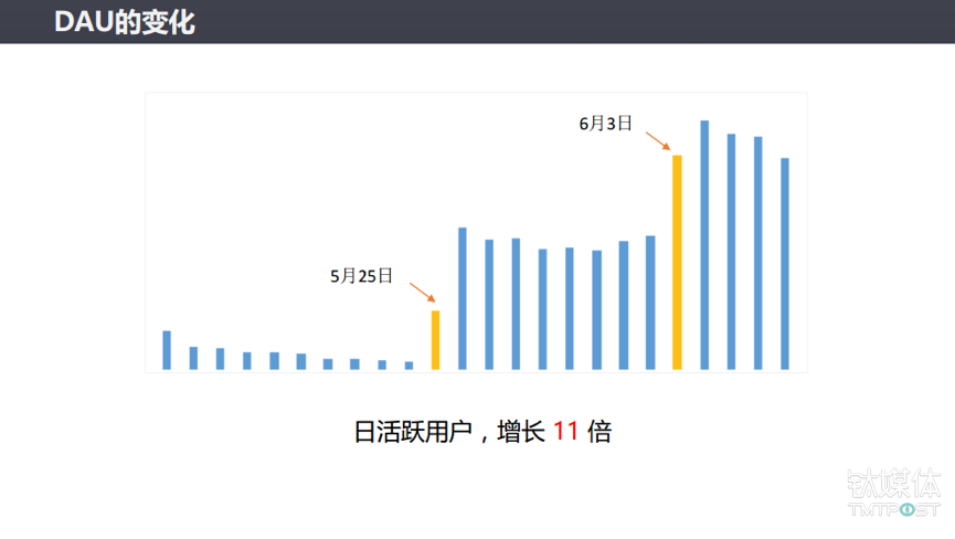 在當(dāng)天的案例演示中,劉進(jìn)提供了三張用戶活躍度表格,別離是注冊(cè)用戶量、日活躍用戶與成交單量,可以看到柱狀圖中,5 月 25 日與 6 月3 日的起伏較大。