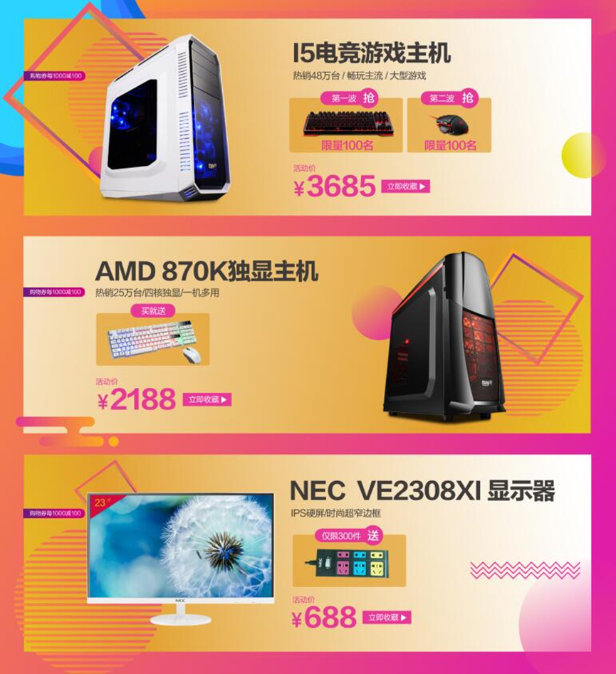 所有主機(jī)和顯屏,滿 1000 減100,滿 2000 減200……以此類推,滿 6000 即減600!