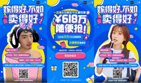 自 6 月 5 日起,一直播已經(jīng)開始為“美妝節(jié)”活動(dòng)預(yù)熱,發(fā)起主播招募令,眾多主播根據(jù)銷售額瓜分 618 萬巨額傭金,最終活動(dòng)銷售TOP10 主播更有萬元大禮包豪華獎(jiǎng)勵(lì),活動(dòng)期間主播們更能在直播間中免費(fèi)使用各種大牌化妝品,誘惑力空前!
