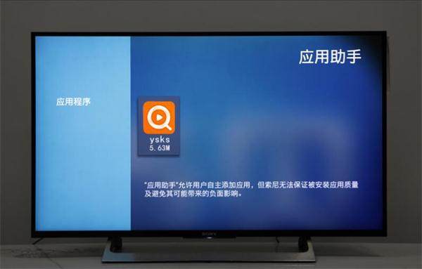 二、將U盤連接索尼電視USB接口,在主頁打開【應用助手】,然后找到影視快搜apk,打開并確認安置;
