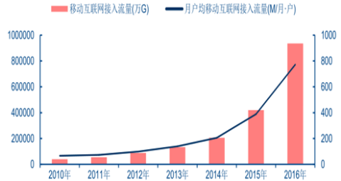 所以從下圖可以看出來(lái),,每一年的用戶接入流量都在呈現(xiàn)飛速上升的狀態(tài),其中從 2015 年到 2016 年翻了近一倍,幾乎用戶每個(gè)月的平均流量消費(fèi)要在1G擺布或者更高。而據(jù)了解大部分手機(jī)用戶的手機(jī)流量在700~800M擺布,所以幾乎大部分用戶每個(gè)月都是缺流量的!