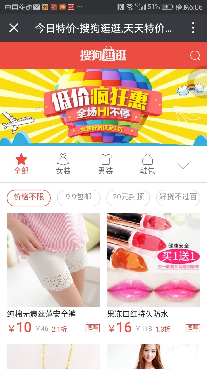 當(dāng)然,為了便利用戶以最快速度找到本身需要的商品,搜狗逛逛具有清晰的分類導(dǎo)航,除常規(guī)男裝、女裝、鞋包等分類外,還推出 9 塊 9 包郵、 20 元封頂、白菜價專場、銷量排行榜版塊,所有優(yōu)惠信息都一目了然,即使是購物小白也能快速完成購物流程,享受購物便當(dāng)。