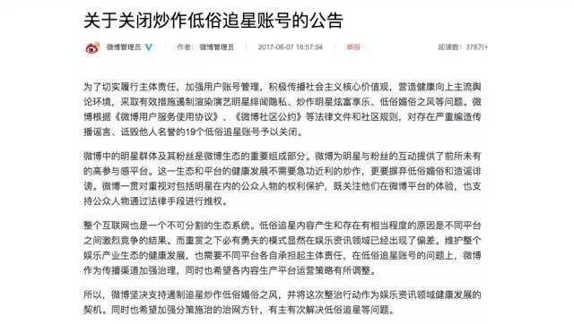 這其中,微博的動(dòng)作最受矚目。終究,,在昨日下午的聲明中,微博本身也承認(rèn)“明星群體及其粉絲是微博生態(tài)的重要組成部分?!?/span>