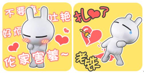 另一種則是個(gè)人演出模式開(kāi)啟的可愛(ài)類(lèi)心情包,將戲很多的兔斯基放在一個(gè)亮眼的配景中,搭配上要表達(dá)的文字或圖案,絕對(duì)是心情如戲,全靠演技!