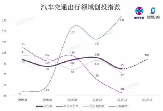 基于對(duì)紅杉本錢、王剛天使基金、招商局創(chuàng)投基金、蔚來本錢、360戰(zhàn)略投資、中駿本錢、經(jīng)緯中國(guó)基金、達(dá)晨創(chuàng)投、上汽本錢、普倫本錢、方皋本錢等投資人的問卷調(diào)查,汽車交通出行指數(shù)預(yù)計(jì)2017Q2會(huì)有較大幅度上升達(dá)到103,與2016年平均水平接近。投資機(jī)構(gòu)對(duì)待2017Q2的融資環(huán)境將更加樂不雅觀。