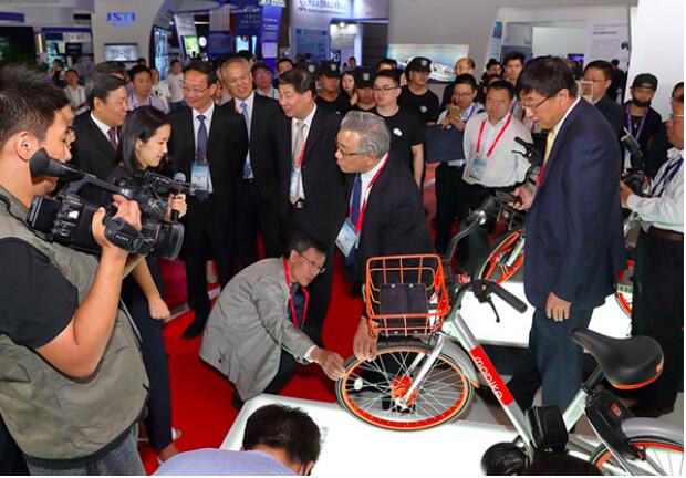 作為全球智能共享單車的開創(chuàng)者和引領(lǐng)者以及“中國智造”的代表,摩拜單車在大會上的表態(tài)引發(fā)了與會嘉賓的關(guān)注。全國人大財經(jīng)委員會主任、原交通運輸部部長李盛霖,中國科協(xié)黨組書記、常務(wù)副主席尚勇,交通運輸部副部長戴東昌等眾多嘉賓參不雅觀摩拜展位,并贊許摩拜單車“科技范兒”。