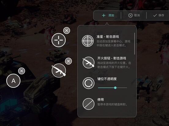 鍵盤映射2. 0 不但保存了此前版本的優(yōu)秀特質,而且對此類安卓FPS游戲做出了極大改善。此版本中,主要增加了“準星-射擊游戲”、“開火按鈕-射擊游戲”兩個功能鍵。