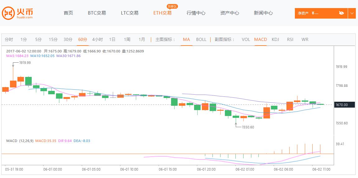 按照中國安適可信賴的以太坊交易平臺(tái)火幣網(wǎng)行情顯示,截至北京時(shí)間 6 月 2 日 13 點(diǎn),以太坊價(jià)格為 1670 元人民幣?;饚啪W(wǎng)以太坊今日開盤價(jià)格1633. 61 元,目前最高價(jià)格 1729 元,最低價(jià)格1550. 6 元,漲幅2.04%。