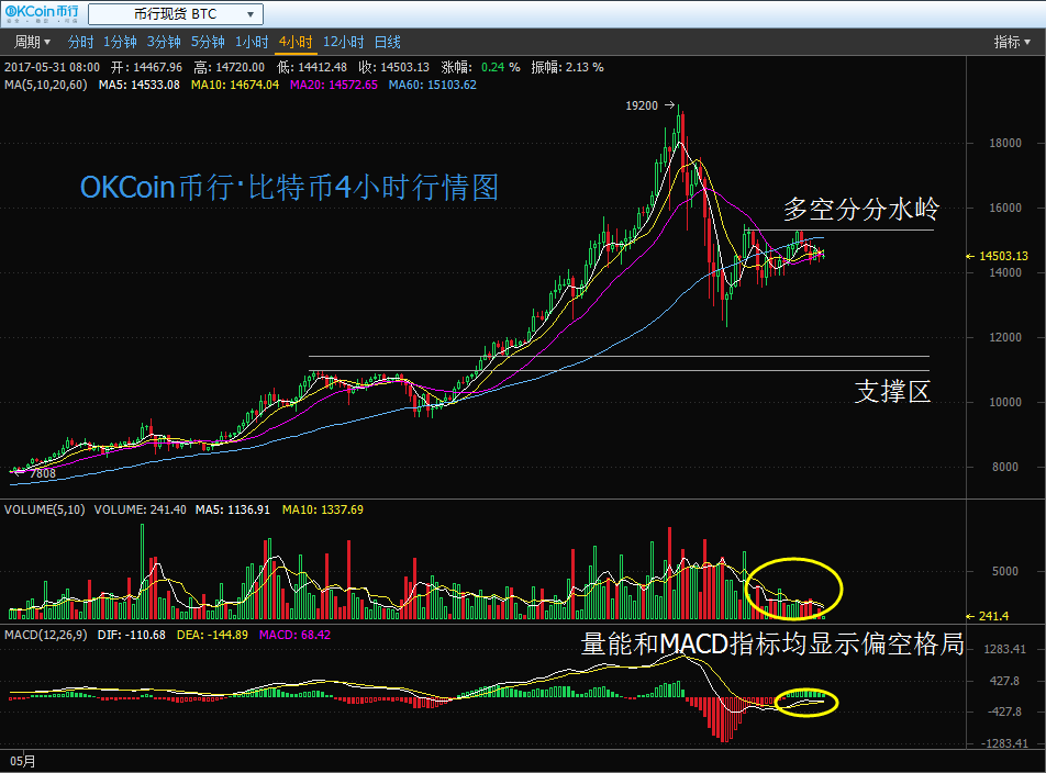 按照國內(nèi)知名的比特幣交易平臺OKCoin幣行網(wǎng)的數(shù)據(jù)顯示,昨天( 5 月 30 日)幣價整體呈窄幅震蕩格局,開市后小幅向上攀升,最高漲至午盤的 15300 一線高位后回落,截止當(dāng)日收盤基本悉數(shù)回吐所有漲幅。截止今日發(fā)稿前,價格未脫離盤整局面,最新交投于 14570 附近。
