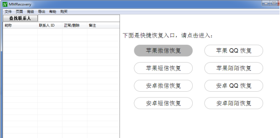 本文保舉的蘋果手機(jī)微信聊天記錄恢復(fù)方法,是借助海威的恢復(fù)工具M(jìn)MRecovery來(lái)實(shí)現(xiàn)的。該工具是一個(gè)全面的手機(jī)通訊消息的恢復(fù)軟件,可以實(shí)現(xiàn)對(duì)安卓和蘋果手機(jī)微信、QQ、短信以及陌陌等刪除聊天記錄的快速恢復(fù),下載軟件后可以參照里面的教程來(lái)完成相關(guān)的恢復(fù)操作。