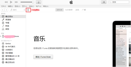 該數(shù)據(jù)恢復(fù)工具是基于蘋果公司的iTunes的手機(jī)備份內(nèi)容進(jìn)行恢復(fù)的,iTunes備份過(guò)程很簡(jiǎn)單,首先通過(guò)USB數(shù)據(jù)線把電腦和手機(jī)進(jìn)行連接,然后運(yùn)行iTunes工具。如下圖在iTunes工具中,點(diǎn)擊頂部工具欄的手機(jī)圖標(biāo)按鈕