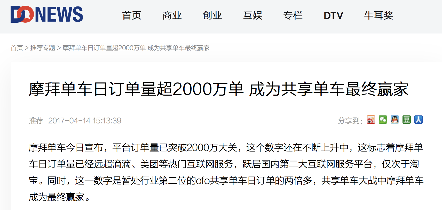 眾所周知,在如今的共享單車(chē)行業(yè)中,ofo小黃車(chē)與摩拜已經(jīng)成為行業(yè)第一梯隊(duì)僅有的兩大品牌,具有良好用戶體驗(yàn)的ofo小黃車(chē)顯然會(huì)更具發(fā)展優(yōu)勢(shì),而ofo在日均總使用次數(shù)方面對(duì)于摩拜的大幅超越也表白了ofo的發(fā)展?jié)摿ΑkS著共享單車(chē)行業(yè)競(jìng)爭(zhēng)的加劇,馬太效應(yīng)將日益明顯,與ofo真實(shí)的日均總使用次數(shù)的增長(zhǎng)比,摩拜僅靠數(shù)據(jù)的造假便想收獲到其預(yù)期的市場(chǎng)份額恐怕將是一個(gè)難以達(dá)成的目標(biāo)。