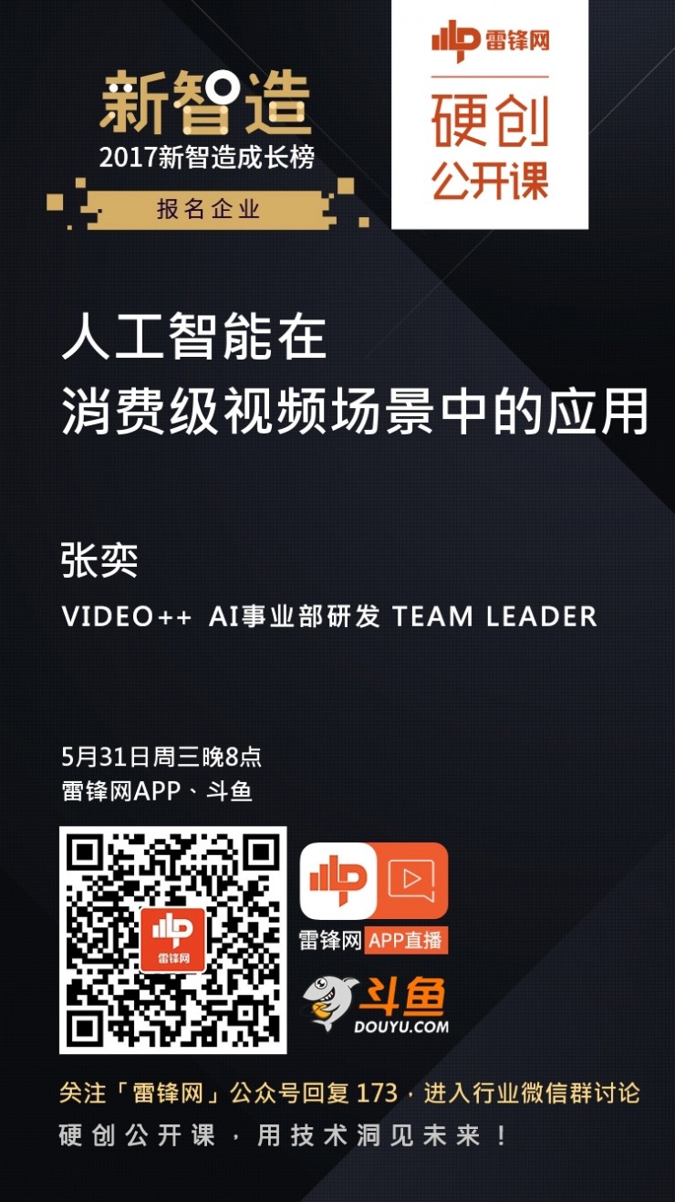 本期硬創(chuàng)公開課,雷鋒網(wǎng)邀請到了Video++人工智能事業(yè)部研發(fā)Team Leader張奕為大家講解人工智能在消費級視頻場景中的應(yīng)用。