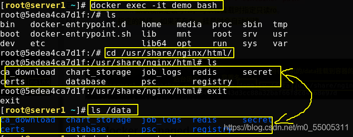 [root@server1 ~]# docker run -d --name demo -v /data:/usr/share/nginx/html nginx