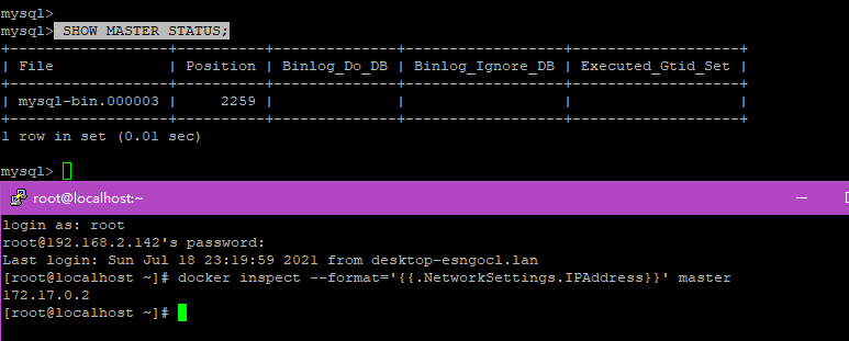 #新開連接 獲取master實(shí)例的在docker的地址