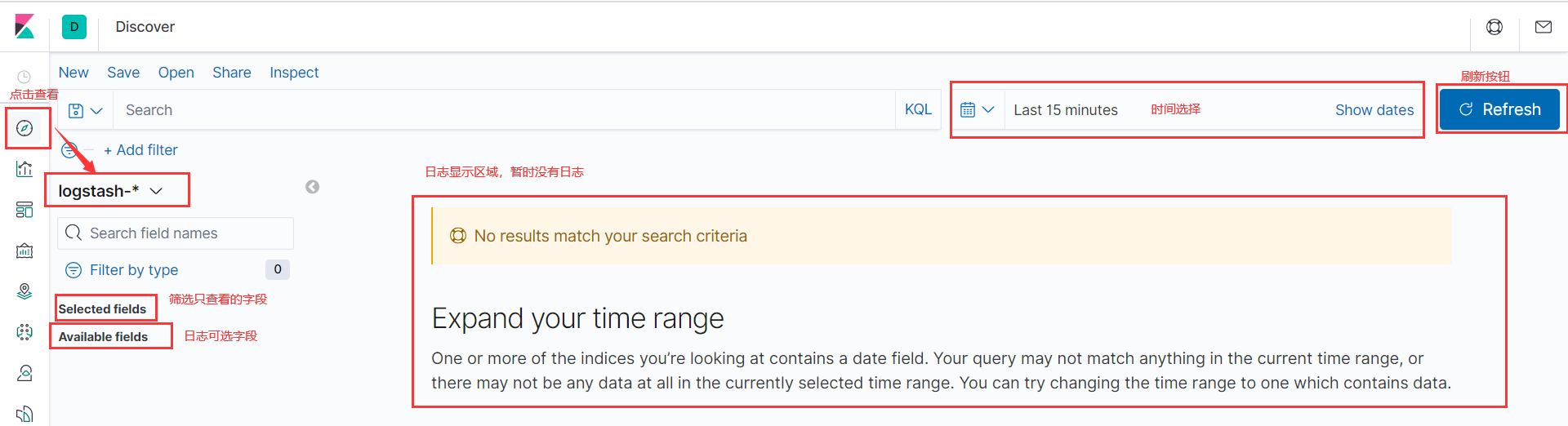 6)創(chuàng)建完成之后,點(diǎn)擊Discover,并選擇剛才創(chuàng)建的index
