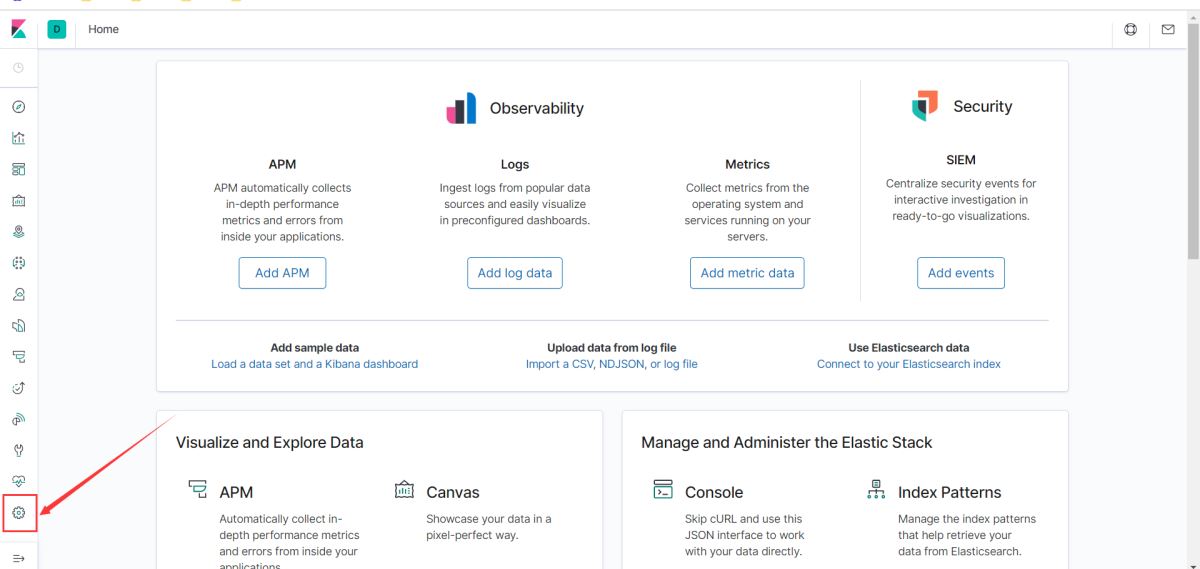 1)http://192.168.0.150:5601,訪問(wèn)Kibana web界面。點(diǎn)擊左側(cè)設(shè)置,進(jìn)入Management界面