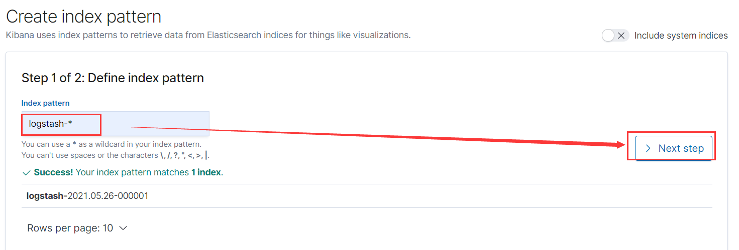 4)創(chuàng)建名稱為logstash-*的index,